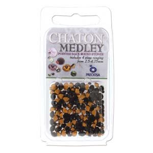 Preciosa Chaton Medley, Jet Mix - 5 Grams. These round, pointed back cut crystals are great for added bling and shine for jewelry pieces. Use these chaton crystals with 2-part epoxy clay such as Crystal Clay and Decore. This assortment pack contain 5 grams of individual colors comprised of four different stone sizes. Stone sizes range from 2.5 mm - 4.75 mm. Read more customer reviews ...